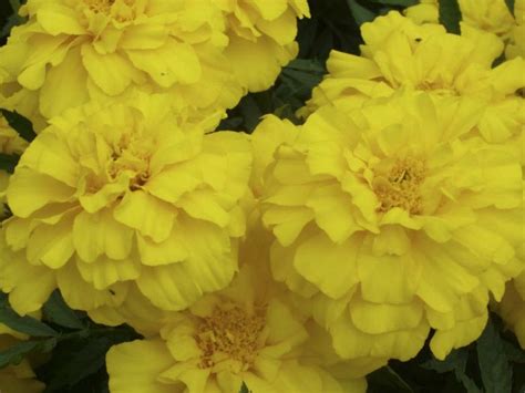 Marigold, Zenith Lemon Yellow.  Tagetes triploid.  African-French hybrid offers an abundance of large flowers with great heat tolerance and repeat flowering.